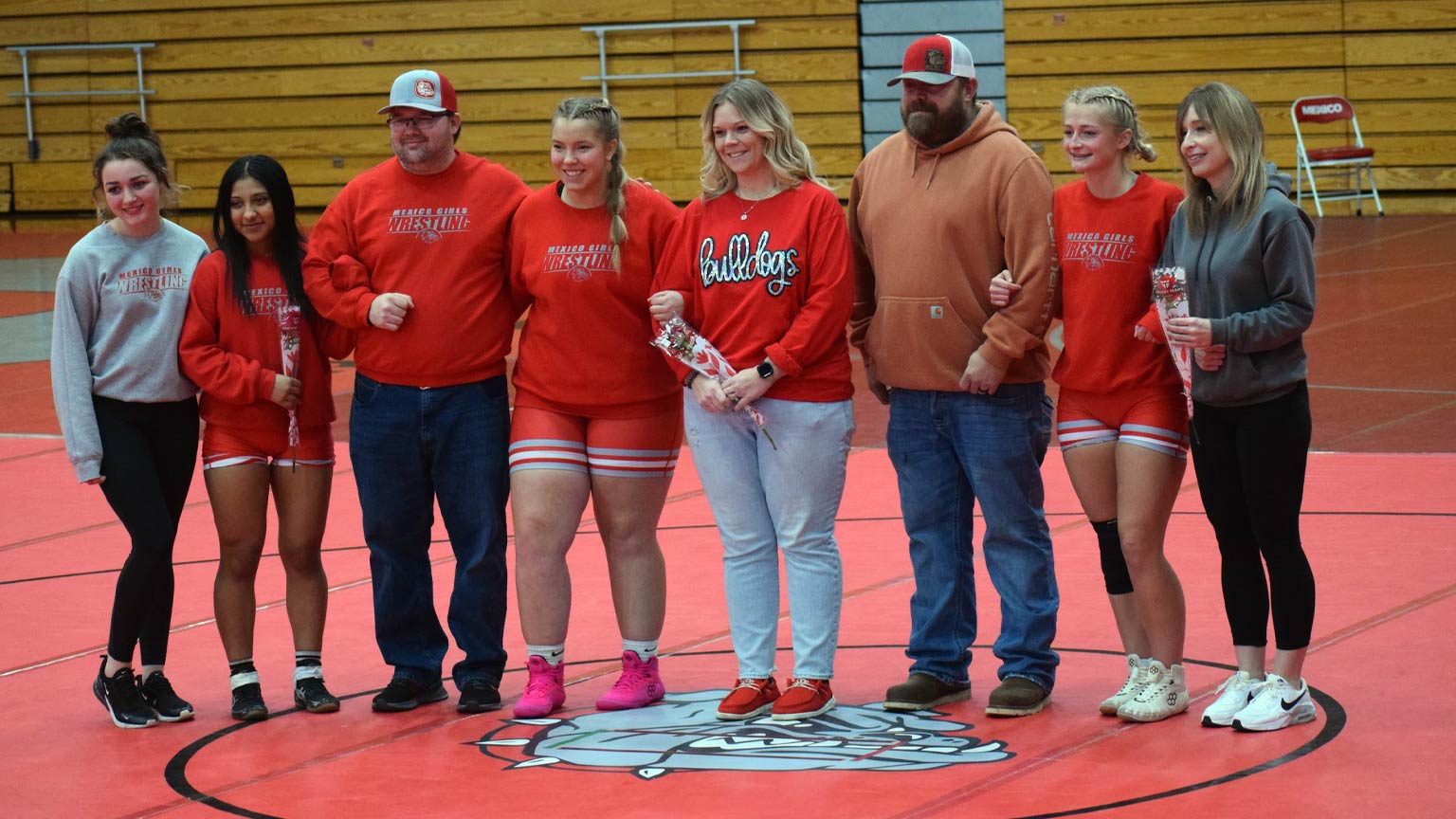 Before the medal round of the tournament the Lady Bulldogs honored their three seniors. Addison Paden, Maddie Tolbert, and Sherlyn Mena Lopez. (See picture) Maddie Tolbert was one of the founding members of the Lady Bulldog wrestling team five years ago, when she was in seventh grade.