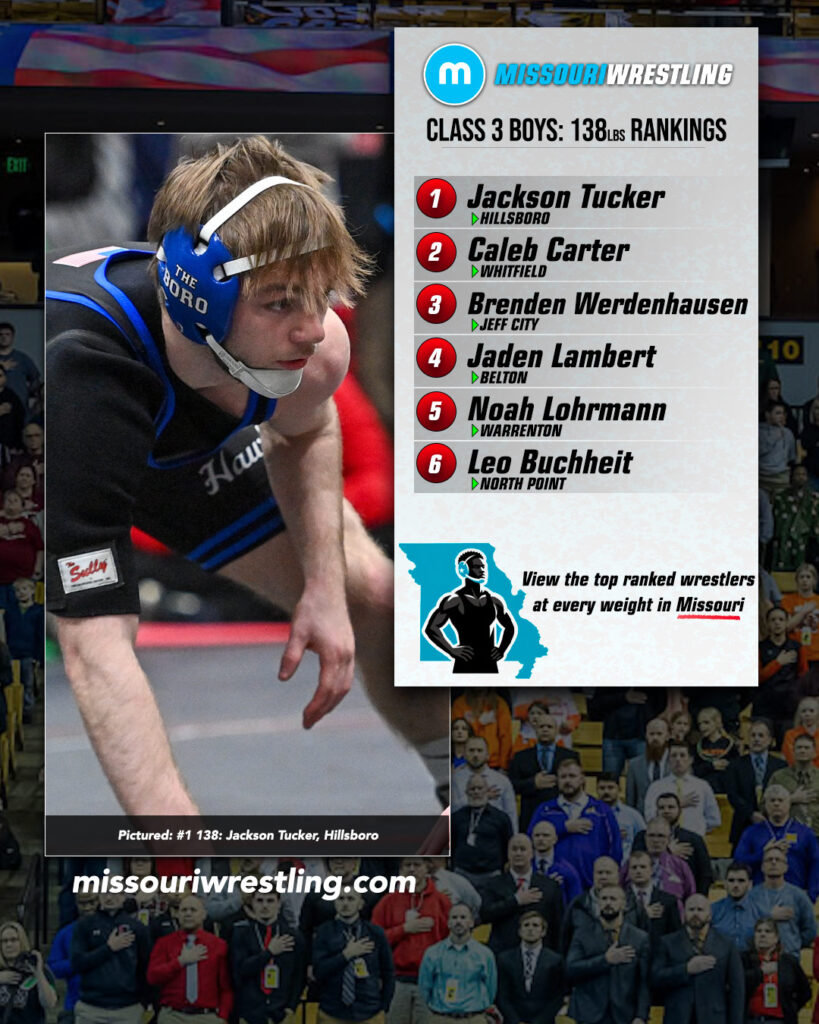 Hillsboro continues to cruise in the first place spot with eight wrestlers ranked with 147 points. Whitfield and Hannibal are ready to battle with both having six wrestlers ranked with team scores of 112 and 106.