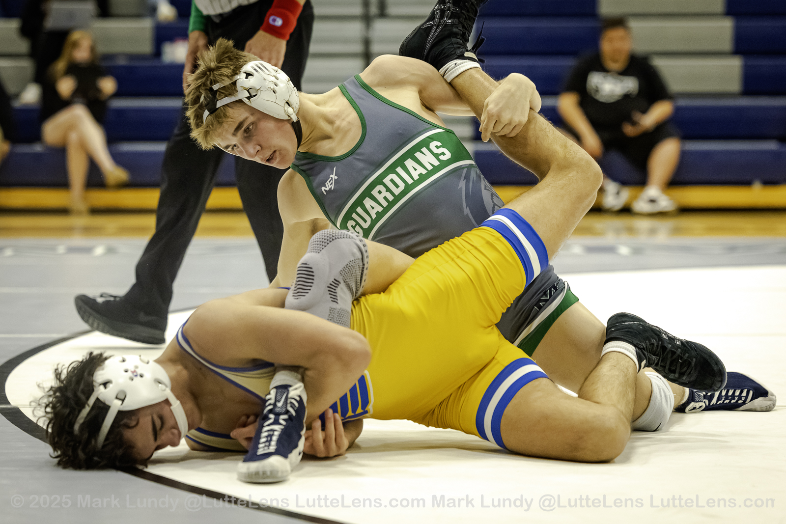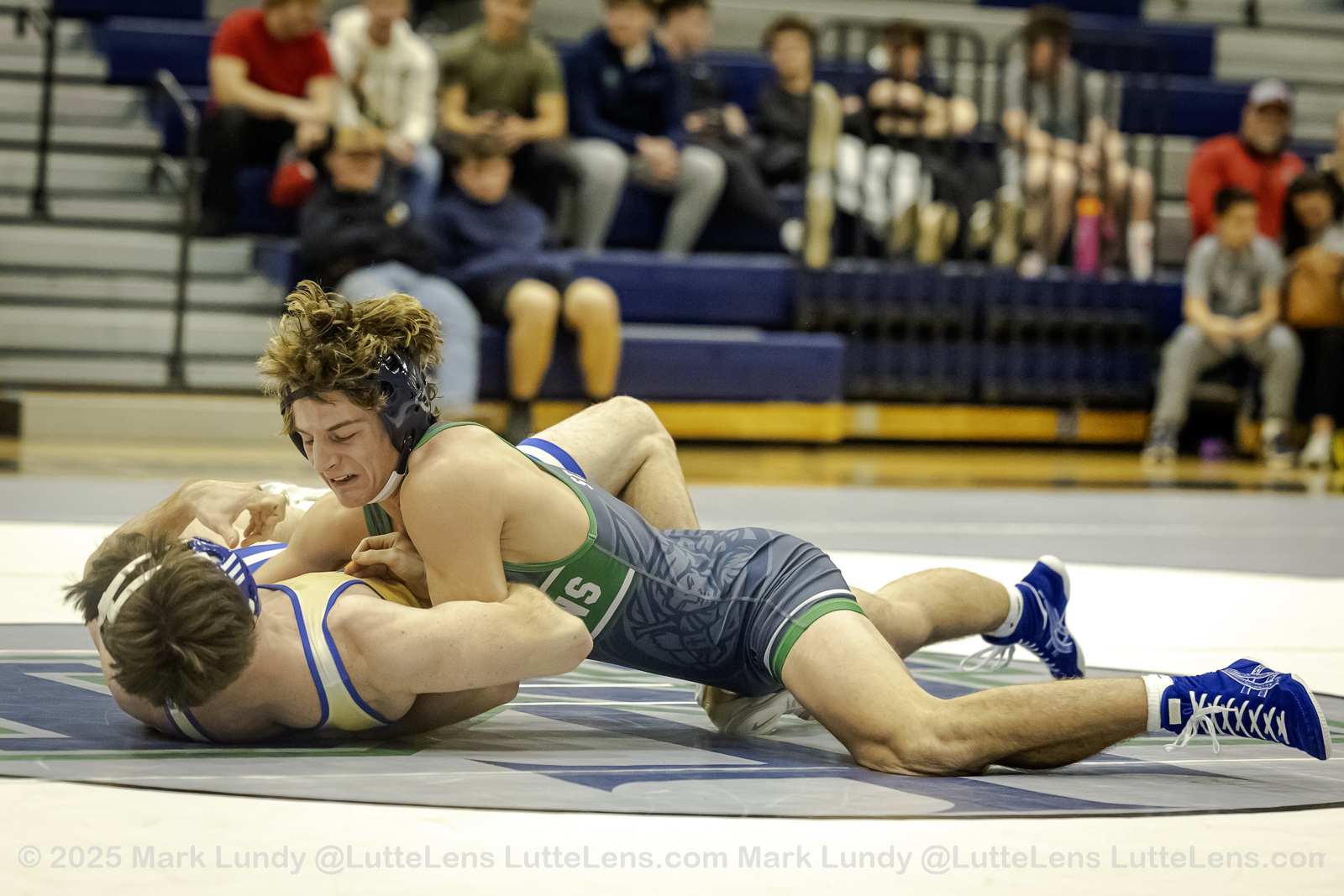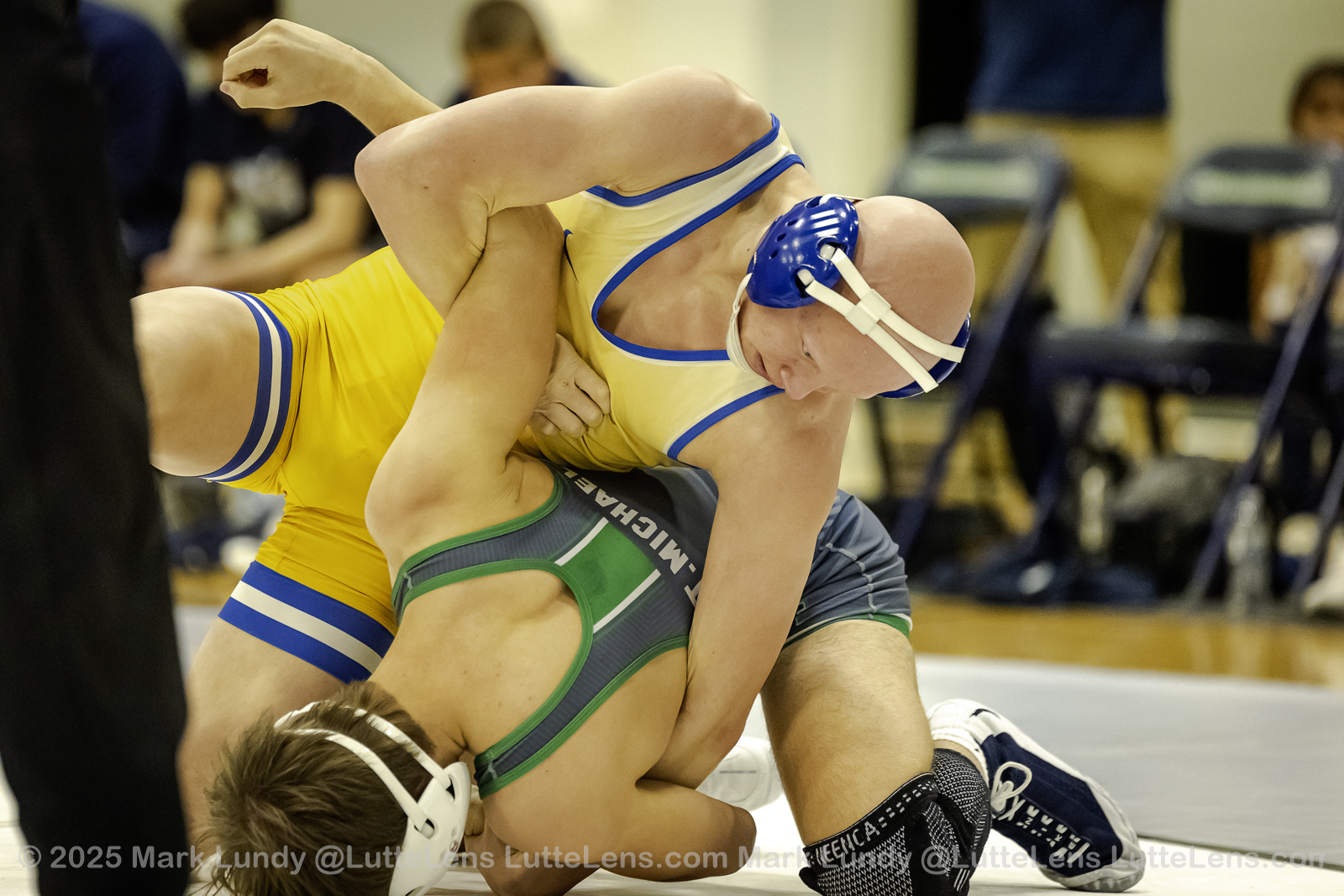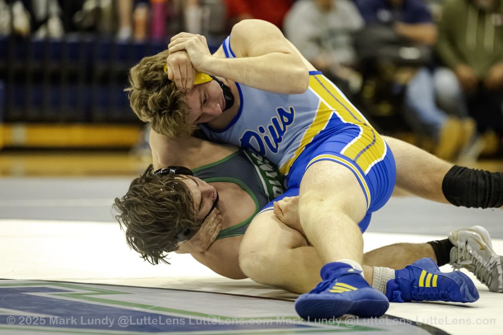 175# Charles Litzau (St. Pius X (Kansas City)) over Braden Knipp (St. Michael the Archangel) (Fall 3:42) – Photo: Mark Lundy