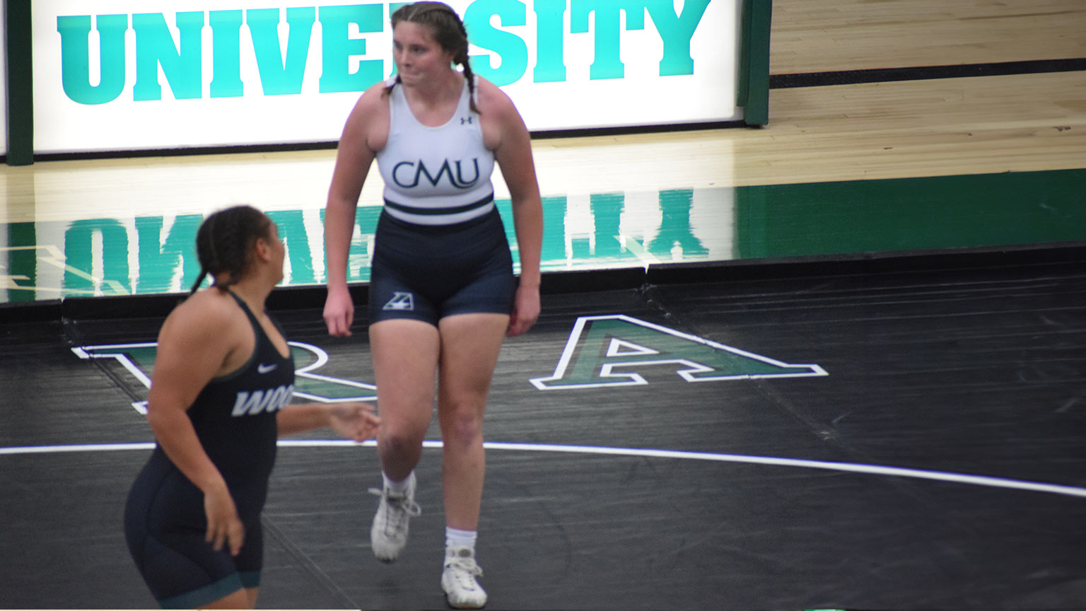 It didn’t take long for the Eagles to showcase their experience and get the home crowd excited. During the women’s dual they outscored the Lady Owls during individual matches by scoring 48 points and only allowing 11 (which included 3 shutout tech falls). Going into the dual, the most anticipated match of the evening was at 124 lbs., where it featured two top 20 ranked wrestlers. However, CMU’s Allison Hynes was all business from start to finish and ended the match early via tech fall by a score of 12-2. Senior Emma Cole also looked solid with a series of takedowns in her season debut.
